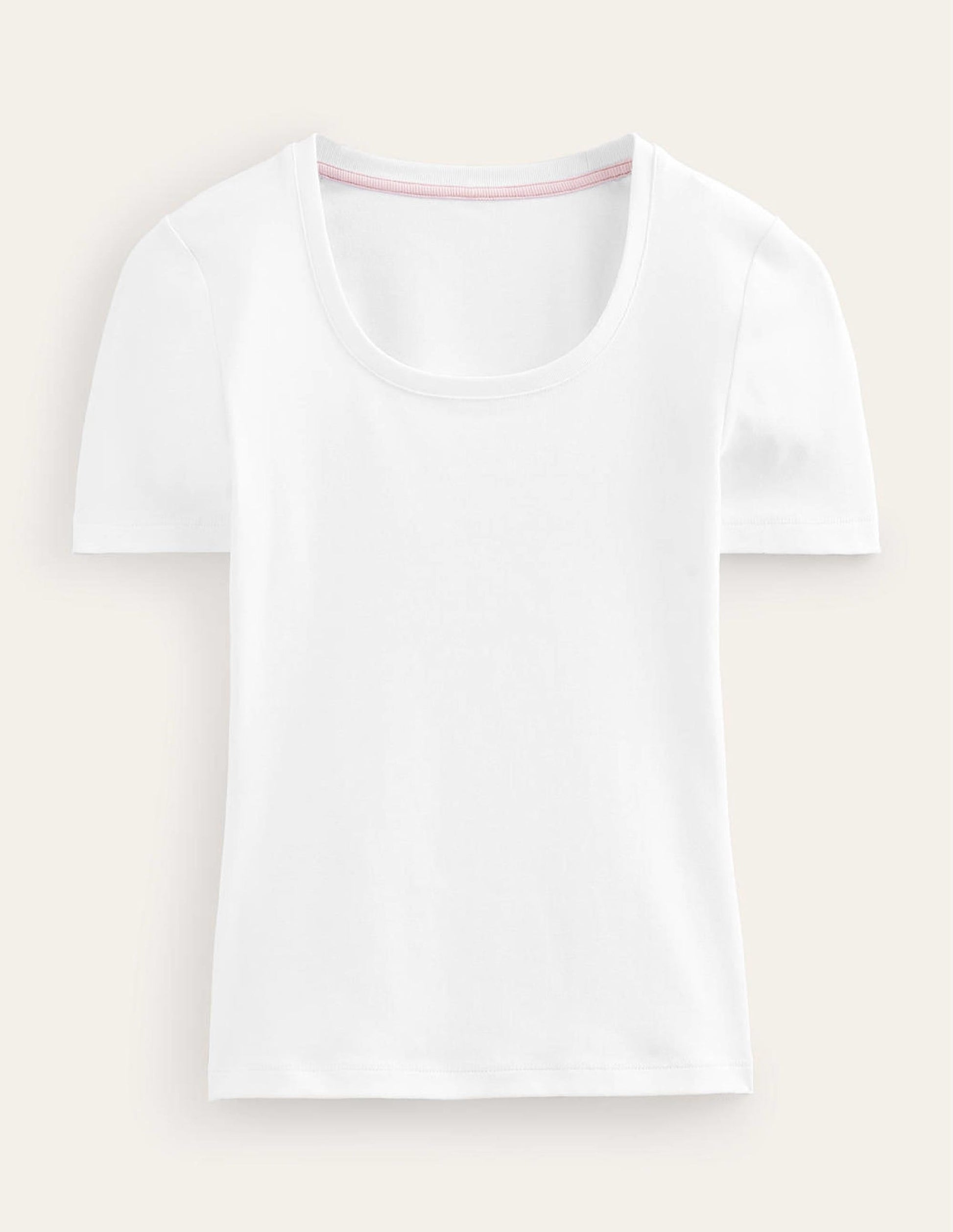 Cut to sit close to the body with a soft. ribbed finish. this scoop-neck tee is an everyday must-have.