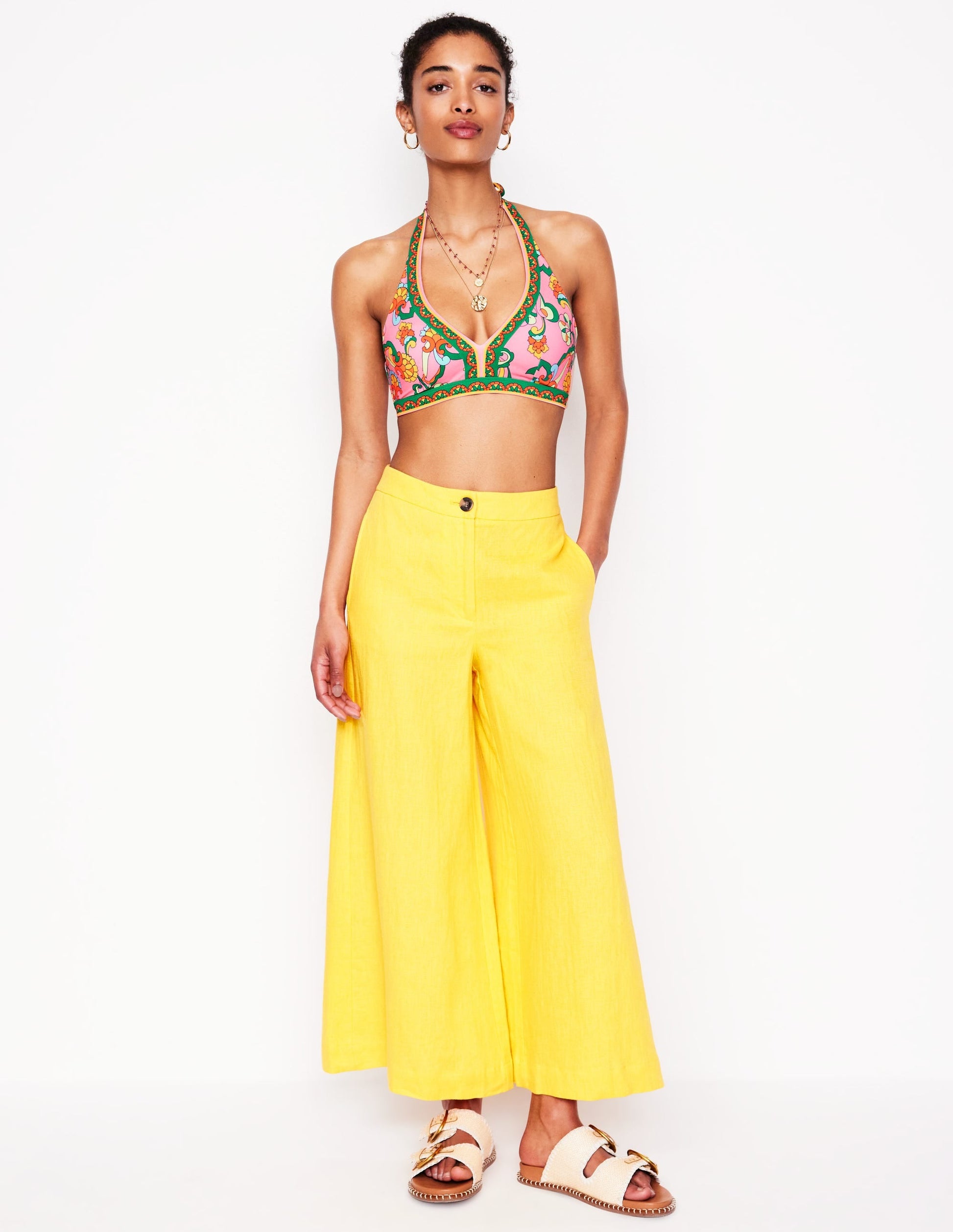 What's this? A feel-good V-neck design with contrast trim. supportive fixed cups and an adjustable tie. Or what we call our bikini top with a built in confidence boost. Match with our classic bikini bottoms.