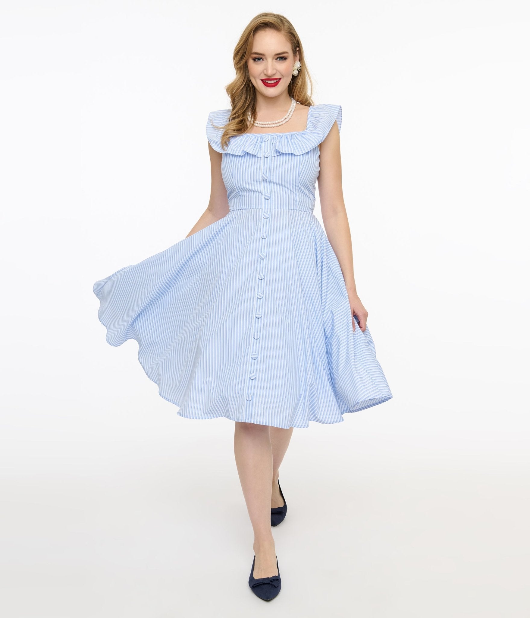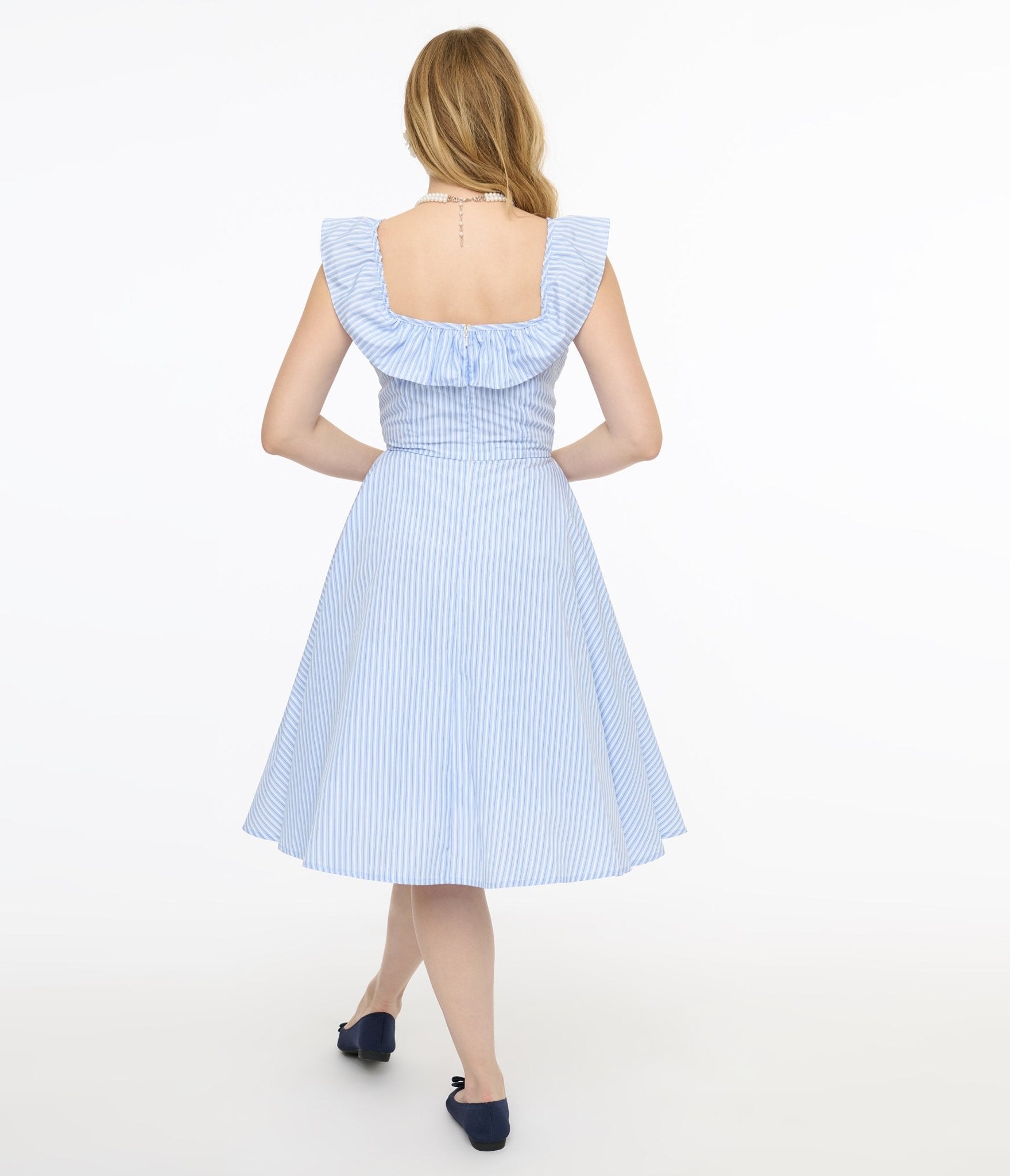 Magnolia Place 1950s Blue & White Stripe Barbara Swing Dress