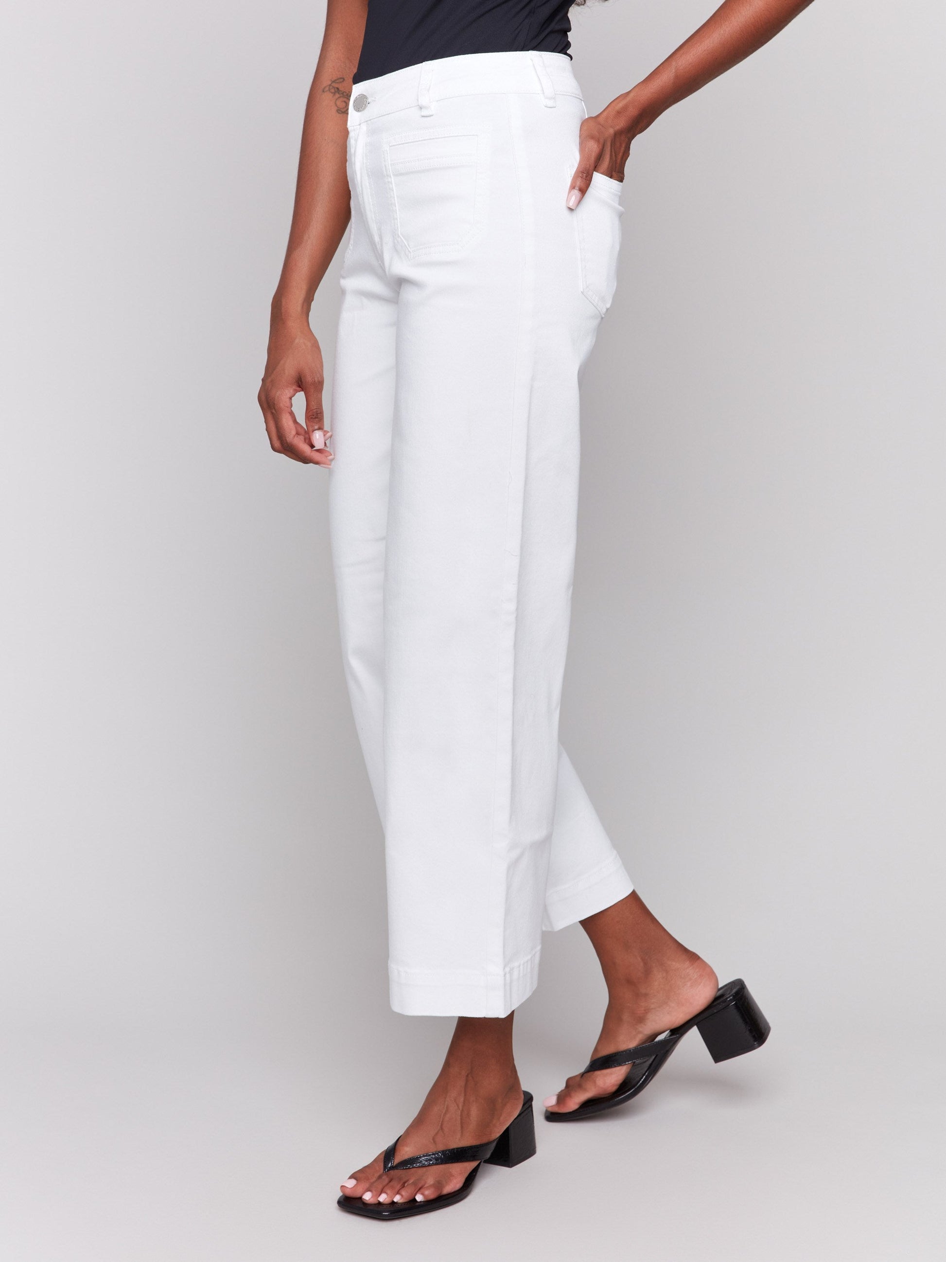 Patch Pocket Flare Twill Pants - White