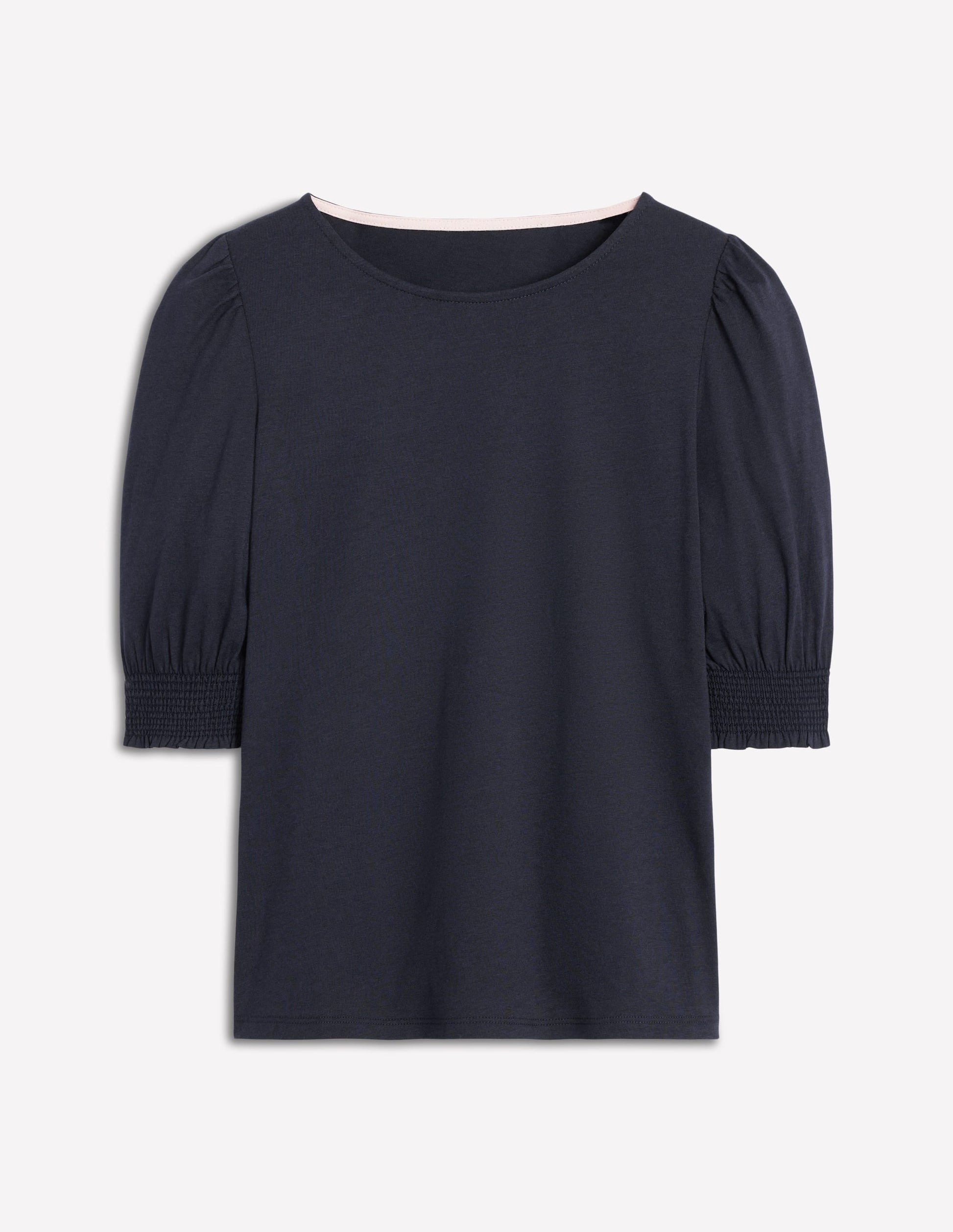 Update your usual jeans and a tee combo with our latest take on the short-sleeve top – the puff sleeves with smocked cuffs make it ideal for work or play.