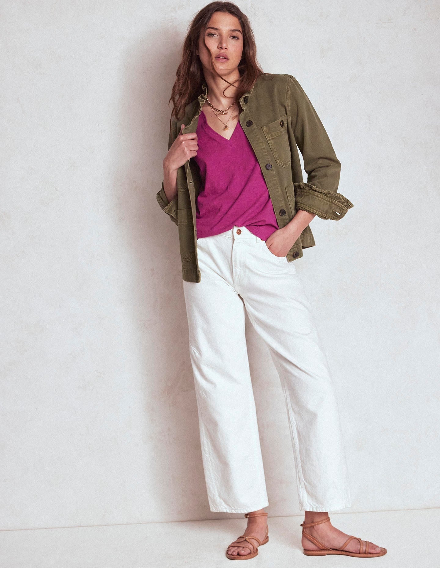 Offering a little more than your standard T-shirt. this soft cotton creation has pretty angel sleeves and a V-neck. And it comes in plenty of colours to choose from…