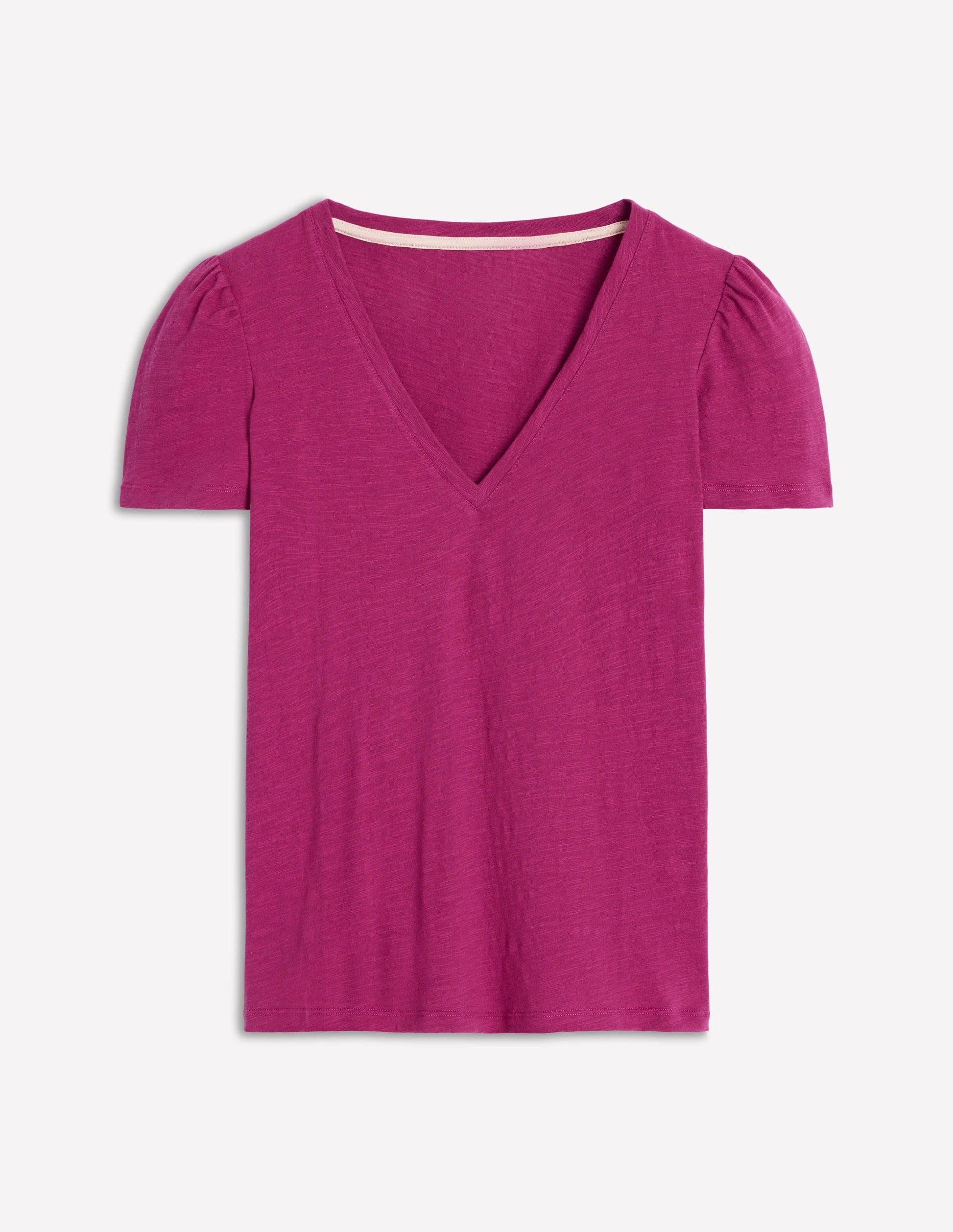Short Sleeve V Neck T-shirt-Rich Magenta