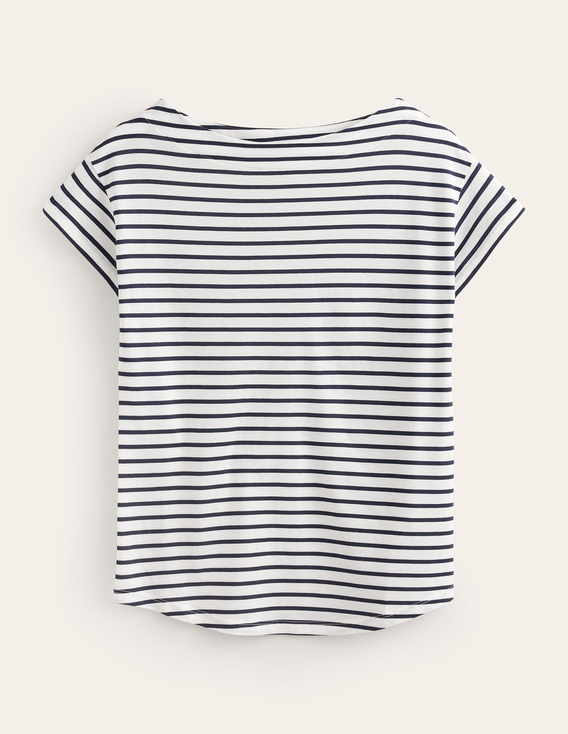 Supersoft Boat Neck T-Shirt-Ivory, Navy Stripe