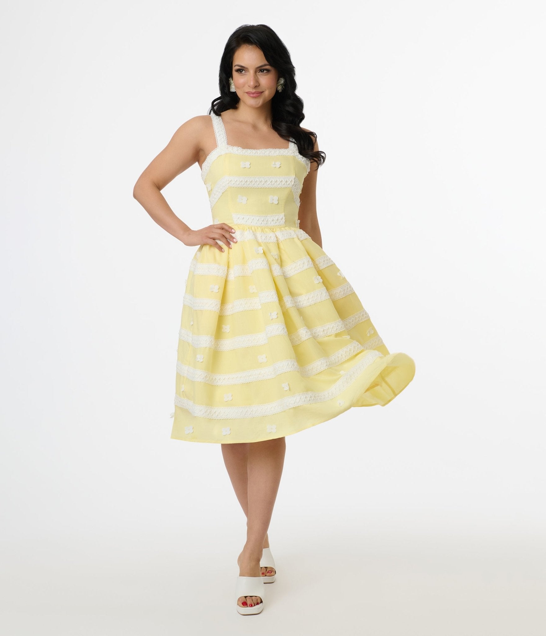 Unique Vintage Lemon Merengue & White Lace Sundress