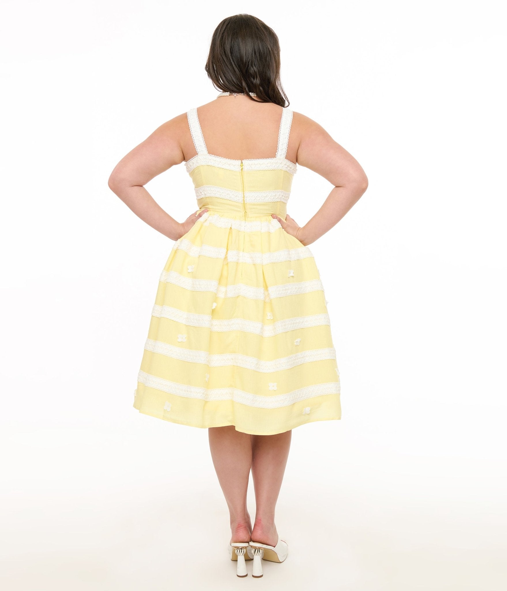 Unique Vintage Plus Size Lemon Merengue & White Lace Sundress